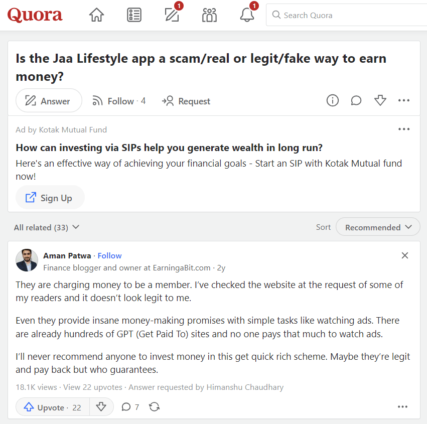 Is the Jaa Lifestyle app a scam/real or legit/fake way to earn money?