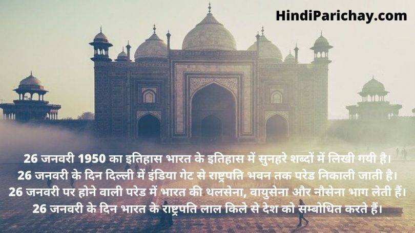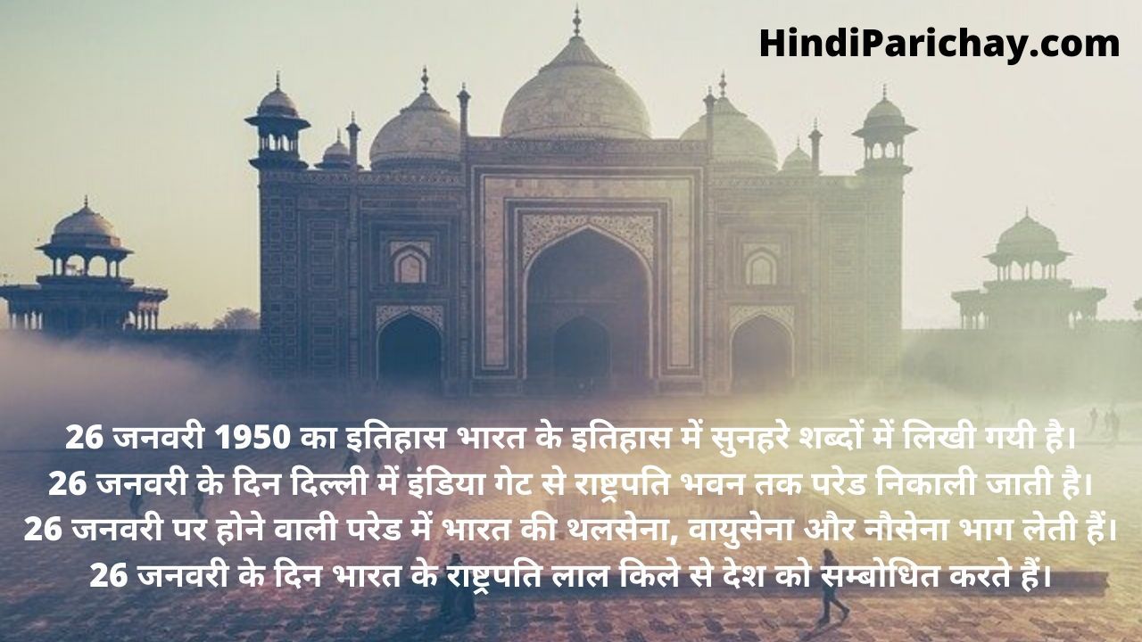- 26 जनवरी 1950 का इतिहास भारत के इतिहास में सुनहरे शब्दों में लिखी गयी है।